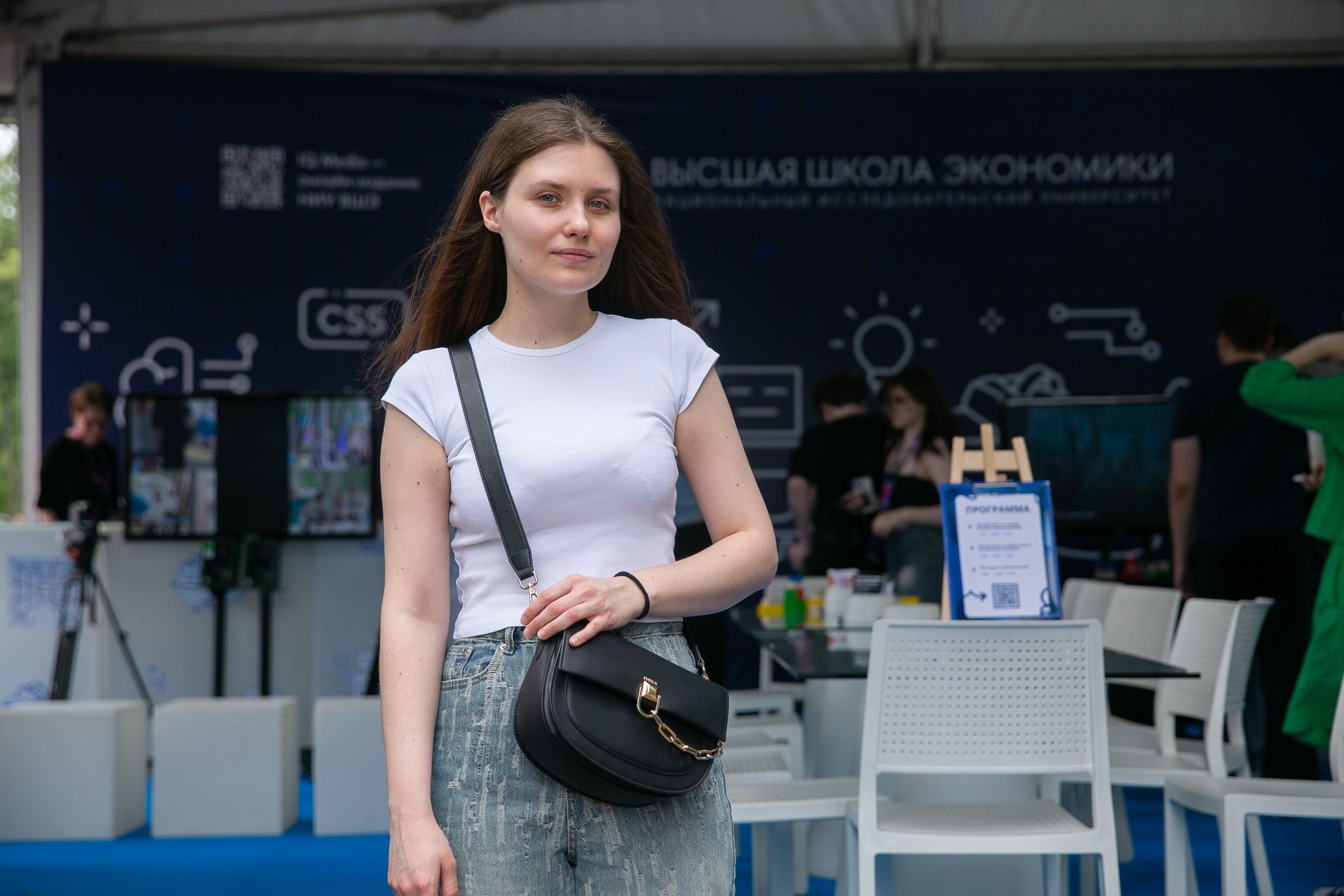 — Я окончил школу №2030 и в этом году поступаю в Высшую школу экономики на бакалаврскую программу «Реклама и связи с общественностью». В шатре НИУ ВШЭ мы отправили сообщение в космос: нужно было просканировать QR-код, сделать послание — и спутник Вышки его получит. Прошли челлендж, где нельзя смеяться, и выиграли стикеры за подписку на телеграм-канал.